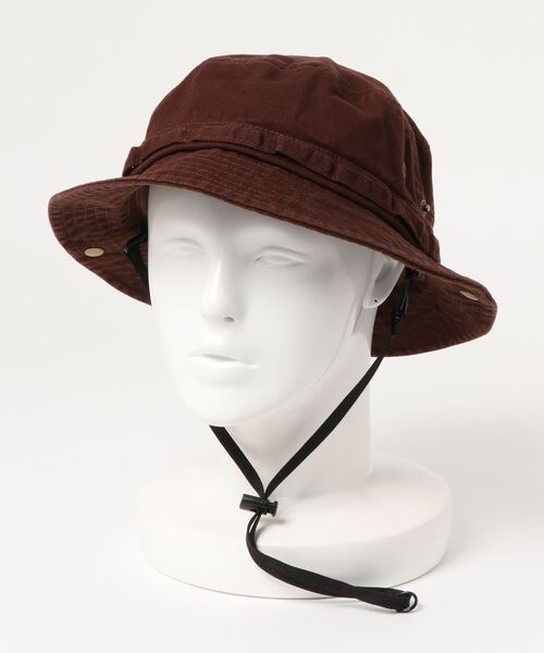 ヴィンテージな風合いを醸し出すバイオ加工のバケットハット。 サイドのスナップボタンを留めることでシルエットの変化も楽しめます。風に飛ばされるのを防止してくれるストラップ付き。 レジャーシーンからタウンユースにと、日差しの暑い季節にも活躍してくれるアイテムです。