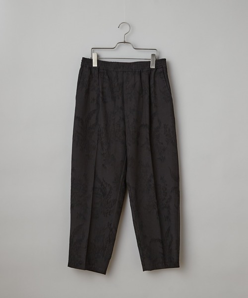 同色柄でさりげないアクセントに ・様々な体型に合わせやすいワイドテーパードシルエット ・野暮ったくなりにくいアンクルカットパンツ ・さりげなく主張する生地と同色の柄アイテム 【生地・デザイン】 パンツ生地と同色の柄を採用し、無地のパンツと同じ感覚で合わせられる季節感ある柄パンツ。ウエストはゴムとドローコード付きの履き心地の良いイージー仕様。ゆったりとしたモモ周りから足首にかけてテーパードをかけたワイドテーパードシルエットなので、動きやすさとスッキリとした見た目を両立。センタープレスで見た目も上品です。アンクルカット丈でより涼しげなアイテムとなっております。 【コーディネート】 ゆったりとしたシルエットで、ビッグシルエットのTシャツやスウェットもバランスよくコーディネートできます。アンクルカットでロング丈のアイテムも◎。春のブルゾンやオーバーシャツ、モッズコートなどライトアウターも着やすいアイテムです。 【お買いものをよりお楽しみいただく為に!!】 ▼商品のお気に入り登録(ハートマークをクリック) お気に入りアイテムの完売カラーの再入荷通知や、ラスト1点の通知、セールの通知も受け取ることができます。 ▼ブランドのお気に入り登録 新商品や再入荷など、クーポン配布などのお得な情報を受け取ることができます。