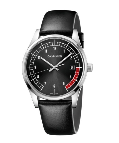 カルバン・クライン コンプリーションシリーズの レースモデル。インデックスに融合されたアラビア数字は、赤をアクセントに印象深く、車のディスプレイとゲージにインスピレーションを受けた、モダンでありながらクラシックな時計。
