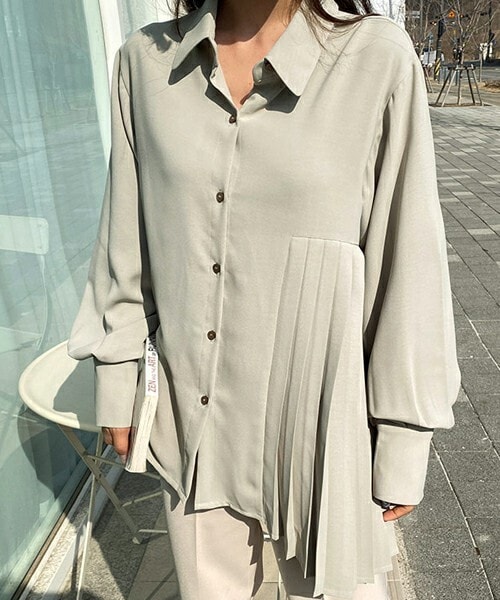 プリーツで高級感のあるポイントを+したシャツ。 サイドが長めのアンバランス丈で 動くたびに揺れる上品な一着です。 ※WEARに記載してある金額と、DHOLIC通販サイトに記載してある金額にシステム都合上、稀に誤差が生じます。正しい金額はDHOLIC通販サイトに記載された金額です。