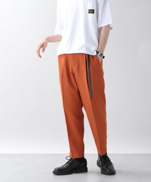 程良い光沢が特徴の、キレイめスラックスが登場。裾にかけて程良くテーパードをかけており、足のラインを綺麗にみせてくれるシルエットに仕上げました。ライトポリエステル素材なので春から秋にかけて長くご愛用していただけます。またセットアップで着用頂けるブルゾンもあるので、旬なセットアップスタイルが完成します。スタイリングを選ばず使える定番アイテムとして、一本は持っておきたいアイテムです!