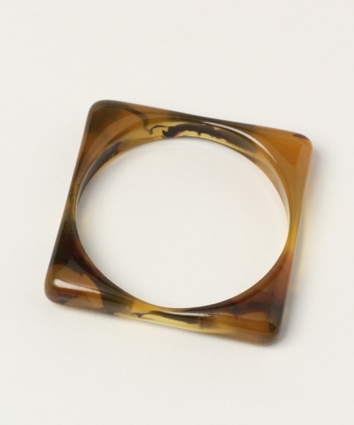 透け感のある樹脂を使用したバングル。手を通すだけのシンプルな作りで、他のブレスレット・バングルとの重ね付けも◎!軽装になる春夏シーズン、手首周りのアクセントとして最適です。