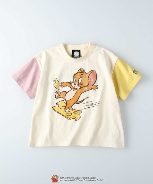 フロントとバックでシチュエーションの違うジェリーがかわいいプリントTシャツ。程よい厚みの素材を使用した、トレンドのワイドシルエット。スリーブにはワンポイントでジェリーの大好物のチーズの刺繍をマークしています。