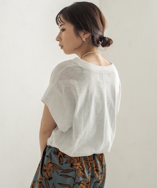 着回し力◎フレンチスリーブTシャツ 袖、前身頃のタックが立体的なシルエットを作るTシャツ。 二の腕が気にならない袖感で年代を問わず着回し力抜群の1枚です。 ・これからの季節に重宝するシンプルなTシャツ ・目は詰まっているけど柔らかい生地感 ・強撚糸加工が施されたシャリ感のある涼しい着心地 ・汗をかいても体に張り付かない ・メイドインジャパンで縫製もしっかり ・パンツにもスカートにも相性◎ ・ジャケットなどのインナーにもおすすめ ▼手洗い可能 ※撮影場所やお使いのモニター環境により若干お色味が異なる場合がございます。 特にロケの撮影では明るく見える傾向にございます。 ※商品はサンプルで撮影をしております。若干の仕様が変更になる場合がございますので予めご了承の上ご注文くださいますようお願いいたします。 ▼商品のお気に入り登録 完売カラーの再入荷通知や、ラスト1点の通知、セールの通知も受け取ることができます。 ▼ブランドのお気に入り登録 新商品や再入荷など、いち早くブランドのお得な情報を受け取ることができます。