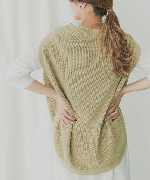 【春夏らしいドライタッチな仕上がりが嬉しいニットペスト】サラッとした手触りが嬉しいハイツイストコットン仕立てのニットベスト。一見シンプルですが、ラウンドヘムを採用した丸みのあるシルエットが特徴的。ロンTEEやシャツとのレイヤードのみならず、ノースリーブニットとしてもお使いいただける万能アイテムです。POINT・綿100%のドライタッチな素材感・丸みのあるシルエットが女性らしさを演出・季節を感じるカラーリングCOORDINATE春はロンTEEやシャツ、ブラウスを合わせていただくのがおすすめ。夏はノースリーブのニットとしてもお楽しみいただけます。着丈が長過ぎないのでパンツ、スカートのどちらにも合わせやすいです。ワンピースとレイヤードしても◎※直射日光や蛍光灯に長時間あたると変色したり、色褪せすることがありますのでご注意ください。※商品画像は、光の当たり具合やパソコンなどの閲覧環境により、実際の色味と異なって見える場合がございます。予めご了承ください。※商品の色味の目安は、商品単体の画像をご参照ください。-----------------------------透け感:ややあり伸縮性:あり裏地:なし光沢:なしポケット:なし-----------------------------