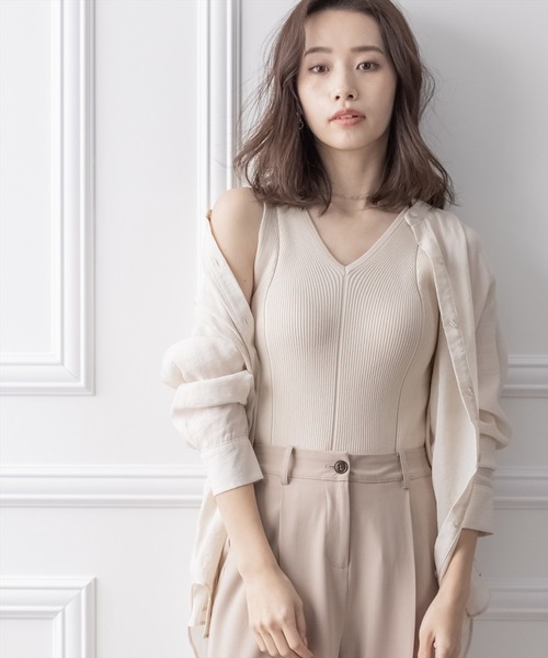 ワードローブに1着あると便利なベーシックデザインのリブニットタンクトップ【デザイン】伸縮性が高く肌馴染みの良いリブニット素材で、着心地抜群のタンクトップです。Vネックで首周りをすっきりとヘルシーに見せ、縦ラインの模様でよりすっきりとした印象に導いてくれます。着回し力抜群のシンプルなデザインなので、ワードローブに1着は持っておきたいアイテムです。【素材感】伸縮性のある着心地の良いリブニット素材。伸縮性:あり / 透け感:淡色のみ若干あり / 裏地:なし水洗いによる洗濯不可 / ドライクリーニング可【コーディネート】1枚でも着ていただけますが、インナーとしてシャツなどを羽織っていただくのもおすすめです。サテンやシアー等の透け感のある素材との着合わせも今季らしくて◎【※お取り扱い上のご注意】1:モニター環境等により実際の商品と多少色味が異なって表示される場合がございます。予めご了承下さい。2:屋外で撮影された商品は、天候により多少実際のカラーと異なる場合があります。商品のカラーに参考される場合はトルソー(マネキン)の商品画像をご参照ください。3:濃い色の商品は、お洗濯や摩擦等による移染にご注意ください。4:末永くご愛用頂く為に、アテンションタグ・洗濯ネームを必ずご確認の上、着用又はお取り扱い下さい。5:生産時期により、色、サイズ、デザイン、素材の質感が多少が異なる場合がございます。あらかじめ御了承下さいませ。