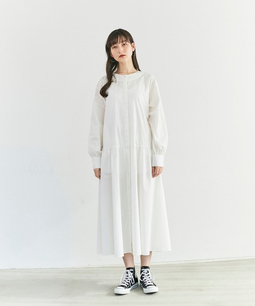 ふんわりスリーブがロマンティックなムードに ローウエストで切り替えた、ギャザーシャツワンピース。 フロントはボタンの見えない比翼仕立てで、すっきりとした印象。 ボリュームのある袖とたっぷりギャザーのスカート部分が、どこかクラシカルな印象を与えます。 ノーカラータイプのワンピースは、ハイネックトップスと好相性。 肌寒い春先は、ギャザーネックやフリル付きのハイネックインナーを合わせて。 ストレートデニムと合わせたレイヤードスタイルで、トレンド感をプラスするのが、おすすめです。 キャンバススニーカーやスリッポンで、スポーティーに仕上げれば、お花見やお散歩などのレジャーシーンにぴったりの装いに。 サボやスクエアトゥのブーツなら、きれいめカジュアルなコーデになります。 巾着バッグやサコッシュで、ラフに決めれば、こなれ感のあるお出掛けコーデの完成です。 日差しの暖かい日や初夏なら、ワンピースとして1枚で着るのはもちろん、フレアパンツと合わせても。 レース素材やシアー素材のフレアパンツやワイドパンツを合わせれば、リラクシーな装いになります。 ふんわりとした袖とウエストギャザーが、フェミニンなアクセントになります。 トングサンダルやポインテッドトゥのミュールで、コーデを引き締めて。 レザーのショルダーバッグやスクエアバッグを合わせれば、上品なカジュアルスタイルの完成です。 ノーカラーですっきりとした印象を与える、クラシカルなギャザーシャツワンピ。 お買い物やお出掛けはもちろん、休日のランチなどのお食事会にも大活躍なアイテムです。 洗濯:洗濯機使用可 【色展開】 ・オフホワイト(白 白色) ・ネイビー(紺 紺色) 【サイズ展開】 フリー 【ブランド紹介】 【Re】+【Normal】 再びを意味するReにNormalを掛け合わせ、固定された概念を再び考えてみるといろんなことがみえてくるという意味を込めました。 動きやすくて、リラックスできる着心地。 長く着られるシンプルさ。 かつ個性的に見えるシルエットの妙。 どんなシーンにも不思議となじむ雰囲気。 普遍的に好きなものに【今】をプラスした毎日を楽しくする服です。 【お買い物をお得にもっと楽しんで頂くために】 ▼商品のお気に入り登録▼ 完売カラーの再入荷通知や、ラスト1点の通知、プライスダウンしたセール通知も受け取ることができます。 ▼ブランドのお気に入り登録▼ 新作や再入荷等、いち早くブランドのお得な情報を受け取ることができます!