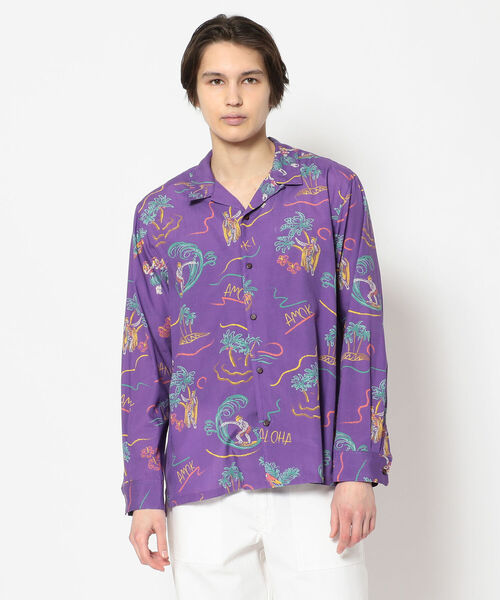 ROYAL FLASH別注商品別注の柄を載せたルーズシルエットのアロハシャツになります。『AMOK』ではお馴染みのブランドタグを、首後ろに配置。サイドにはスリットが軽く入っています。着丈はフロントの方が長く作られているので、インナーとのレイヤードが綺麗に着て頂けます。素材はリヨセル×コットンを使用しており、肉厚過ぎず薄すぎない絶妙な生地感が◎ユニセックスで着用可能です。amok /アモクDesigner : 大嶋 祐輝 氏Production Area : Japanamok [アモク]は、デザイナー 大嶋祐輝(YUKI OSHIMA)が2015年に設立。「古き良きものを壊し、新しい技術などを用いて、人間の奥底の感情に響くような洋服をデザイン」がコンセプト。