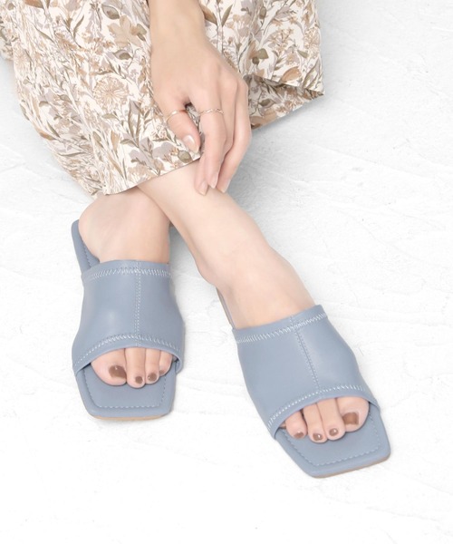 エッジィな印象のスクエアトゥ。 ●柔らかい素材感 ●ふっかふかのインソール ■スタッフ着用コメント■ ▽スタッフN.N 普段のサイズM(23.0-23.5cm)標準よりも、足囲、足幅が狭め 【Mサイズ着用】 素足で着用。長さ幅共にちょうど良いサイズ感です。 --------------------------------------------------- ※足の形には個人差があります。モデル試着感想は参考程度にお考え下さい。 * … * …春夏COLLECTION… * … * カクカクとしたフォルムがエッジィな印象のスクエアトゥミュールサンダル。 ソフトレザー仕様で肌馴染みもよく、 さらっと履けるミュールタイプは、おうち時間の多い人にもおすすめ。 ボリュームのあるシルエットで安定感があり、 甲の部分はしっかりと覆われているので、 脱げることもなくストレスフリーに履いていただけます。 トレンドのシャーベットカラーも魅力。 シンプルなデザインで、そんなコーデとも相性の良いおすすめの一足です。