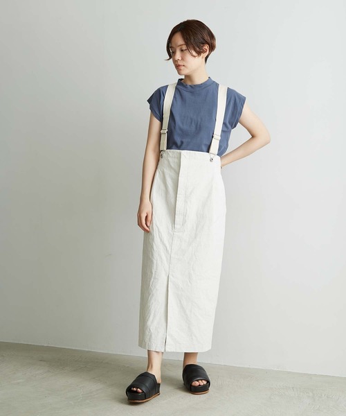 綿/麻の生地の上に白い顔料をのせ製品で洗いをかけることでビンテージ感のある生地に仕上がりました。洗えば洗うほどに顔料が馴染んでいきていい雰囲気に◎カジュアル好きな方には吊り型ワンピースとしての着こなしを。シンプルがお好きな方には、肩ヒモを外していただき、ストレートスカートとして着こなしていただけます。洗濯:手洗い可※画像はサンプルです。実際の商品と仕様・加工・サイズなどが若干異なる場合がございます。※撮影画像は、光の当たり具合やモニターの環境により色味が違って見える場合があります。あらかじめご了承ください。※取り扱いの注意については取り扱い表示をよくご確認の上、着用をお願いいたします。