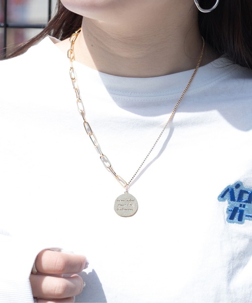 【リンクコーデ専門ブランド/ペアペア】コインの形にロゴの入ったネックレスが登場★筆記体でのロゴがかわいく左右でチェーンのデザインが違う目を引くデザイン!カジュアルコーデにおすすめです♪【毎週木曜日18:00~】インスタライブにて新作アイテムを紹介中!!サイズ感や生地感、合わせ方など細かく解説★質問もできるので気になることはその場で聞けちゃう!ぜひ遊びに来てください♪雑貨のインスタライブは毎週水曜日18:00から★※ご覧のモニター環境や撮影環境により 実際の商品と多少色味が異なって見える場合がございます。 ご理解の程よろしくお願いいたします。◆INFORMATION◆・お気に入り登録(♥マークをクリック)完売カラーの再入荷通知や、ラスト1点の通知、セールの通知も受けることができます。・ブランドのお気に入り登録新商品や再入荷など、いち早くブランドのお得な情報を受け取ることができます。※サイトに表示されているカラー名と実際のお届け商品に記載されているカラー名が異なる場合がございます。
