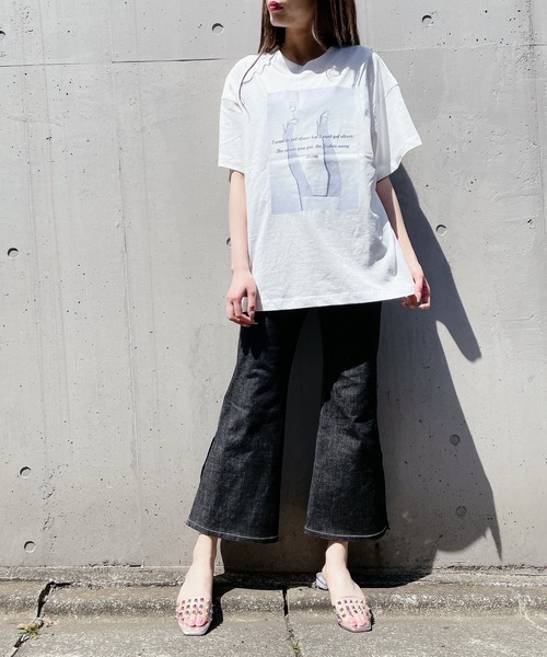 ◆ヴィンテージ風の色合い、加工を施したビッグTメンズライクなオーバーシルエットでワンピースっぽくも着られるTシャツ。オリジナルのグラフィックプリントもポイント。これからの時期に様々な着こなしができるTシャツはワードローブに加えたい一枚。※ヴィンテージ風の風合いを出すためにあえて加工を施したデザインとなっております。