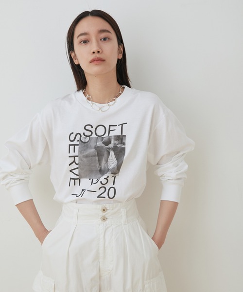 《接触冷感》《UVケア》いつものTシャツコーデを旬顔に。一枚でこなれ感の出る、今夏マストなフォトプリントTシャツ◇2021春夏◇ ADAM ET ROPE' FEMME 【Material】 ハイゲージで透けにくいハリのあるコットン素材。これからの時期に快適に着ていただけるよう、接触冷感性があり、UVケア(紫外線95.5%カット)素材を使用。 【Design】 <カラープリント>海外のカフェ看板の写真と、コーヒーにまつわる名言やお気に入りの言葉が書いてある写真を使用。 <モノクロプリント>ソフトクリームを作る機械の写真を使用。softserveはソフトクリームに最初につけられた名前で、1931はソフトクリームの起源。-5/-20はソフトクリームが溶けない為にキープする温度のこと。 【Color】 ホワイトベースにフォトプリントが映える2色展開。 【Styling point】 Tシャツがゆるっとしたサイズ感なので、デニムやカラースラックスと合わせたカジュアルなスタイリングがおすすめ。 ◇アームプリントTシャツ(品番:GAM01170)と同型です。 --------------- 裏地:なし 光沢感:なし 透け感:なし ウエスト:ゴムなし ポケット:なし 伸縮性:あり 生地の厚さ:普通 洗濯方法:手洗い可 --------------- ※画像の商品はサンプルです。お届けする商品に仕様・サイズ等の変更が生じる場合がございます。予めご了承ください。 ※ロケ撮影画像は、光の当たり具合で色味が異なって見える場合がございます。商品の色味は、スタジオ撮影の画像をご参照ください。