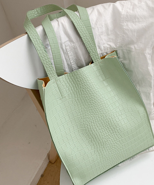 これからの季節にピッタリなカラーリングのクロコ柄トートバッグ。 クロコの型押しデザイン、縦長のシルエットは上品な印象。 やわらかめな素材感がかさばらず体にフィットし、 ちょっとしたお出かけにも◎ A4サイズも収納できるのでマルチに活躍するバッグです。 ★お買いものをよりお楽しみいただく為に!★ ▼商品のお気に入り登録 お気に入りアイテムの完売カラーの再入荷通知や、ラスト1点の通知、 セールの通知も受け取ることができます。 ▼ブランドのお気に入り登録 新商品や再入荷など、クーポン配布などのお得な情報を受け取ることができます。 ※商品画像は撮影時の光や角度により、実物の色味と異なって見える場合がございます。 ※撮影はサンプル品を使用しており、表示のサイズ感も実物とは若干異なる場合もございますので、 予めご了承ください。 ※生産時期により色・素材・サイズ感など多少異なる場合がございます。予めご了承ください。