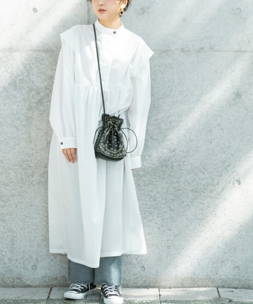 程よくゆるっと。バンドカラーのトレンドシャツワンピ。 リラックスムード漂う、ゆるシルエット。袖も長めデザイン。 ワイドに仕上げた袖は、ロールアップで調整するのもオススメ◎。 全体的にゆるっとしたオーバーサイズシルエットは「こなれ感」たっぷり。 ■point ・体型カバー◎ ・バンドカラー ・袖口の幅広カフス ■detail サッと着るだけで外に出れちゃう楽ちん使えるワンピ。 かわいいのに体型カバーもしてくれる、優秀アイテムです。 首元はバンドカラーのタイプ。 袖口はしっかり幅広カフス。袖のロールアップも決まりやすい。 お色はモノトーンのオフホワイト、ブラック、2色展開です。 ■fabric …………………… 透け感:なし(ホワイトのみインナーの濃度により若干の透け感あり) 厚さ:薄手 伸縮性:なし 裏地:なし ポケット:なし …………………… ■coordinate マキシ丈なのでそのまま一枚でも着用いただけますが、スリットボトムやイージーパンツと合わせると リラックス感がプラスされます。 足元は春色パンプスはもちろん、スニーカーなどと合わせても◎ 春はスプリングコートやマウンテンパーカーと合わせて、レギンスやデニムとのレイヤードもオススメです。 夏はシンプルにサンダルやスニーカーに合わせて、一枚ですっきりと大人のオシャレを楽しんで。 ※ご注意※ ・屋外の光や照明の当たり具合で、実際の商品の色味とカラー別画像の色味に若干の違いが発生する場合がございます。 ・詳細画像と併せてご確認の上、ご注文いただきますようお願い致します。 ※サイトに表示されているカラー名と実際のお届け商品に記載されているカラー名が異なる場合がございます。 ●お買い物をお得によりお楽しみいただく為に● ▼商品のお気に入り登録&ブランドお気に入り登録▼ がおすすめです! ♡をクリック 完売カラーの再入荷通知や、ラスト1点の通知、プライスダウンしたセール通知も受け取ることができます。 ブランドお気に入り登録もご一緒にお願い致します。
