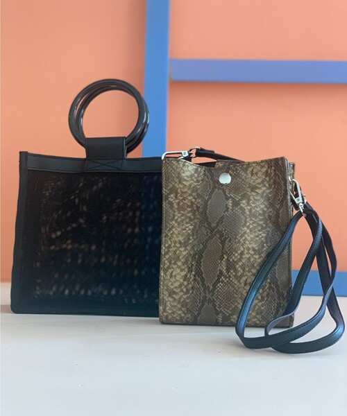 【デザイン】透け感のあるチュール生地でお作りしたスクエアフォルムのバッグ。持ち手には艶やかなリングを用いて、モードな雰囲気に。中身見えが気にならない様、アニマルプリントデザインのインナーバッグを完備しています。ロングストラップ付きで、メイン・インナーバッグ共に、ショルダーバッグとしてお使い頂けます。気分やスタイリングに合わせアレンジが出来る4WAY仕様です。店舗へのお問い合わせ商品番号:040-02313●製品寸法:99:高さ19.5cm 幅(上部)21cm 幅(下部)21cm マチ8.5cm 持ち手上がり7cm 付属ショルダー対応サイズ64~120cm 付属ポーチH19cm W15cm D5cm備考:重量:約290g