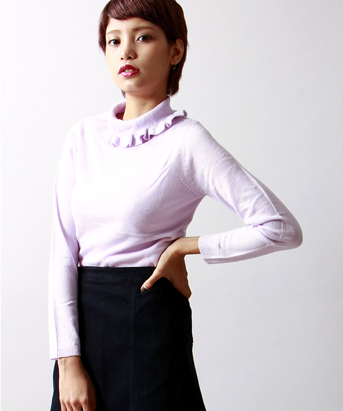 ハイネック仕様で仕上げたニット。柔らかな肌触りで、ボディラインに程よくフィットする着心地が魅力。首元にあしらったフリルデザインがフェミニンな印象を着こなしに演出します。一枚で着用頂くのは勿論、インナーとしてのアクセント使いもオススメ。お値段も手頃なので、色違いでのご購入もオススメのひと品です。 ▼このアイテムを使った特集ページ < TREND LOOK "この秋を制する"カラーコーデBOOK! > 店舗にてお問い合わせの際は、下記の品名・品番をお申し付け下さい。品名:フリルハイネックセーター 品番:DL14WN-2402-001