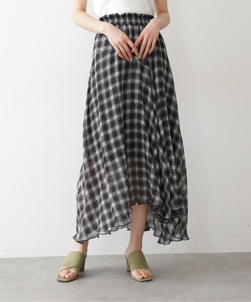 軽いタッチで凹凸した楊柳素材を使用し、歩くと揺れるイレギュラーヘムがポイントのチェック柄スカート。斜めの切り替えでデザイン性があり、いつものフレアシルエットとは違った、女性らしいニュアンスのある1枚。 動きのある裾のフレアーはメロー始末にすることで、足元を軽やかに仕上げています。 ウエストはゴム仕様でラクチンな穿き心地です。 ※ひざ丈まで裏地付き ※生地の特性上着丈に多少の前後差がございます。 【Sサイズ→79~82cm、Mサイズ→83~86cm】 ※こちらの商品はSサイズの展開がございます。 ◆サイズ目安◆ (Sサイズ→身長153cm~156cm ウエスト60cm~62cm)