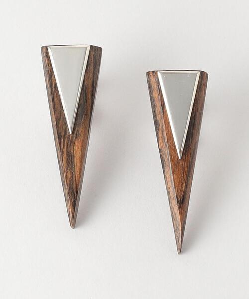 アールデコをイメージしたイヤリング。ボコテにシルバーを重ねたシャープなトライアングルデザインです。LOEFF別注でお作りいたしました。<Haute Joaillerie AKIO MORI(オート ジュエラー アキオ モリ)>森 暁雄氏が1966 年パリ滞在中に出会った象牙・べっ甲素材のジュエリーに触発されスタートしたブランド。伝統の素材を用い、洋のモチーフに和の技法(蒔絵、螺鈿など)を駆使し西洋と東洋の美を融和させた独自の世界を創出します。店舗へお問い合わせの際は、全国のUNITED ARROWS各店舗まで下記の品名/品番をお申し付けください。品名:LF AKIO/M BCTxSV ER 品番:88335990082※ モデル着用画像の商品はサンプルです。実際の商品と色味、仕様、加工、サイズ、素材等が若干異なる場合がございます。