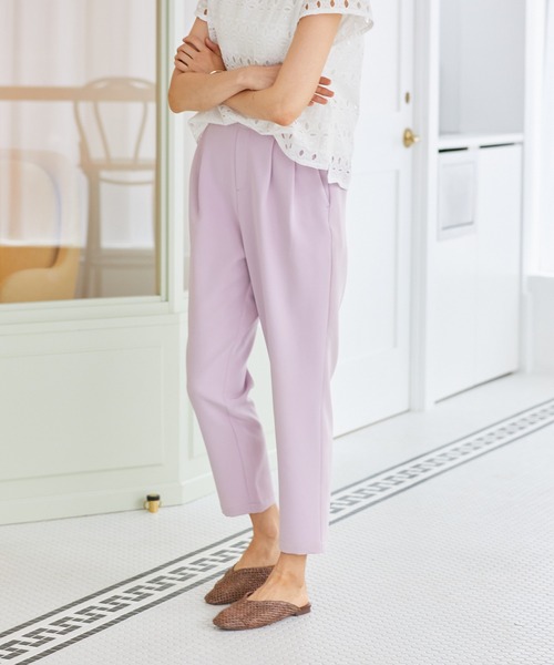 andGIRL web「毎日コーデ」掲載!やわらかなストレッチ性のある生地を使用したテーパードパンツ。ベーシックなデザインだからこそ、脚をキレイに魅せるシルエットにこだわりました。ウエストはバック部分のみゴム仕様で長時間の着用も楽ちんです。【商品取り扱い上のご注意】■手洗い可能。■濃色製品は白・淡色製品と分けて洗って下さい。■濡れたままで長時間放置しますと衣類への色落ちの恐れがありますのでご注意下さい。■アイロンはあて布をして下さい。■この商品は、強い日光(又は照明)を長時間受けますと変色する恐れがあります。洗濯後は必ず日陰干しをして下さい。■生地の特性上、着用や洗濯・クリーニング等の繰り返しの摩擦により、毛玉が発生することがあります。連続着用は避け、着用後はブラッシングによるお手入れをおすすめいたします。■毛玉になった場合は、毛玉取り器等によりお取りください。■摩擦により色移りの恐れがあります。また、雨や汗で湿った状態では色移りしやすくなる場合がありますので、ご注意下さい。【Rewde】仕事もプライベートも、ノーブルでフェミニンなマインドを大切にする女性に向けて、トレンド感をさりげなく取り入れ、ONもOFFもスマートに過ごせるワードロープを提案します。Rewdeはかわいいだけじゃない、レディになれるブランドです。【お買いものをよりお楽しみいただく為に!】■商品のお気に入り登録■気になったアイテムは商品ページ内のハートマークをクリック。完売時の再入荷や、最後の1点の通知、コーディネート画像がアップされたとき、お得なお値下げの際の通知を受ける事ができます。【お知らせ】ページでも通知が確認できます。■ブランドのお気に入り登録■新商品や再入荷など、クーポン配布などのお得な情報を受け取ることができます。