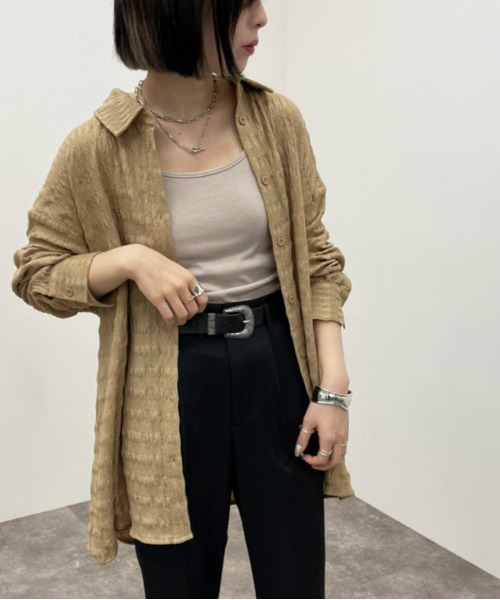 【抜け感を演出♪素材感がおしゃれなクシュクシュクロスシャツ!】 くしゅくしゅとした、しわ加工が入っているアイテムで 表面感があり、1枚でオシャレに着ていただけます♪ 柔らかい素材感で、ゆるっとしたシルエットで着れるアイテム。 1枚でルーズに着ても良し、インスタイルで すっきりまとめてもおしゃれな1枚です。 着回し力抜群で、羽織りにも、レイヤードスタイルにも 使える万能アイテムです! --------------------------------------- 生地の厚さ:★★☆☆☆ 透け感:若干透けあり 裏地:なし --------------------------------------- ※ご覧のモニター環境や撮影環境により実際の商品と多少色味が異なって見える場合がございます。 ご理解の程よろしくお願いいたします。 【お買い物をよりお楽しみいただく為に♪】 ▼商品のお気に入り登録をおすすめします ♡をクリック! 完売カラーの再入荷や、ラスト1点の通知、 セールの際の通知を受ける事ができます。 ブランドのお気に入り登録も ご一緒にお願い致します。 大人カジュアル / ベーシック / 着回し / 春