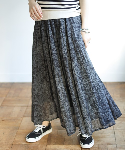 【Holiday×AIC】2021 Spring&Summer itemナチュラルな風合いが春にぴったり!デイリーユースしやすいロングスカート ●オリエンタルな総柄でありながら、落ち着いた配色で普段使いしやすい●ラフな質感でカジュアルスタイルにぴったり。たくさん動く日にもおすすめです●なかなか柄物に手が出ないという方にも、ボトムなら取り入れやすい●トップスを選ばないので、コーデの幅が広がります コーディネートTシャツやスウェットにスニーカーやスポーツサンダルを合わせたカジュアルスタイルがおすすめ。あえてロングシャツやジレをレイヤードした重さのあるスタイリングも大人っぽい雰囲気が出ます。ラフに着たいアイテムなので、アクセサリーなどの小物でメリハリを付けると素敵です。【AIC.】「All In Comfort=すべてを快適に」ファッションだけでなく、ライフスタイルにも心地よさを。ゆとりの中にトレンドやスパイスを詰め込みました。大人の今の気分を叶えるスタイリングを提案するブランドです。 ※掲載画像の商品の色味は、屋外や屋内の光の照射や角度により実物と色味が異なる場合がございます。また表示のサイズ感と実物は若干異なる場合もございますので、予めご了承ください。 ※着用、お取り扱いの際は、商品についている品質表示とアテンションタグを必ずご確認下さい。