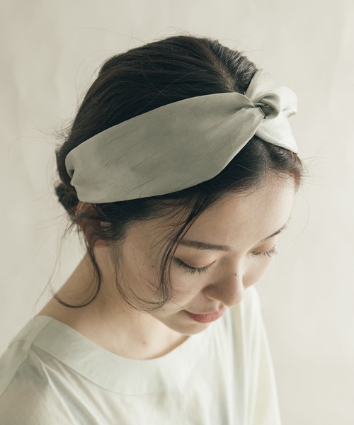【艶っとサテン地】サテンの艶っとした生地感で、お顔周りを春夏ムードに仕上げるターバン。敢えてシワ感を残して仕上げることで、サテン地の表情が豊かに。まとめ髪に合わせて、後れ毛を垂らせば大人っぽいアップヘアアレンジの完成です◎※メッキ製品は変色してしまいがちです。こまめなお手入れで防止してください。アレルギー体質の方や体調が低下している方など、かぶれることがありますので十分にご注意ください。※アクセサリーは壊れやすいものです。取扱いにご注意ください。※その他お取り扱いに関しましては、商品に付属のアテンションタグをご覧ください。※商品画像は、光の当たり具合やパソコンなどの閲覧環境により、実際の色味と異なって見える場合がございます。予めご了承ください。※商品の色味の目安は、商品単体の画像をご参照ください。