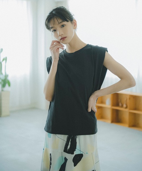 トレンドの肩にボリュームを持たせたパワーショルダーのカットソー。袖はタックの重なりだけでシルエットを作っているため、モード感が強すぎず、幅広いテイストで着られます。 深めのタックをとったスリーブは腕をカバーしてくれるのも嬉しいポイント。 カラッとしたドライタッチの天竺素材を使用しているので盛夏まで長く着られます。 無地のシンプルなデザインなので、ボトムを選ばず着回しできます。