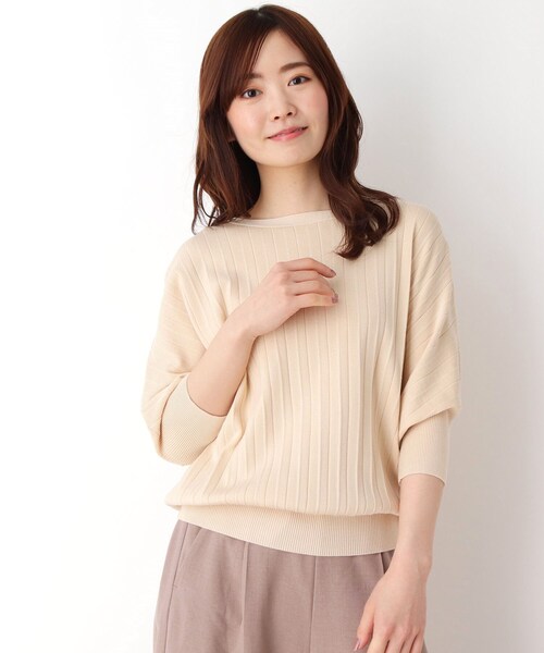 【デザイン】ゆったりシルエットが魅力のドルマンスリーブのニット。今シーズントレンドのアコーディオンプリーツでニュアンスある表情に仕上げました。シンプルな中に今年らしいムードを盛り込んだ使える大人の一枚です。ストレートワイドパンツ合わせのデイリーベーシックスタイルがおすすめです。【生地感】滑らかで着心地の良いレーヨン混ニットを使っています。モデル情報:身長166cm B83 W58 H85 着用サイズ:38(M)店舗へのお問い合わせ商品番号:763-12211●製品寸法:38(M):着丈54cm B105cm 裄丈54cm40(L):着丈55cm B106cm 裄丈55cm42(LL):着丈59cm B110cm 裄丈55cm備考: