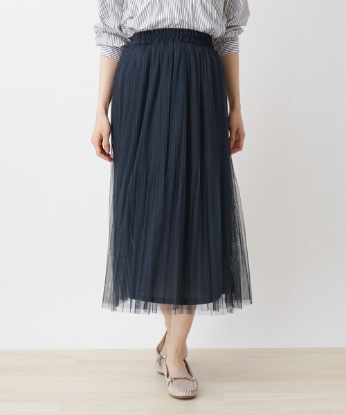 【デザイン】ふんわりと揺れる、ボリュームたっぷりのチュールスカート。合わせ次第でかわいらしくも、大人っぽくも仕上げられます。程よく透ける足元が重たくなりすぎず絶妙なバランス感に。大人が履きたくなる上品なふんわりシルエットもポイントです。※ポケットなし【生地感】フワッと柔らかなチュールと、裏地は滑らかで光沢感のある素材です。※オフホワイト(003)はやや透け感があるため、インナーの着用をおすすめします。モデル情報:身長167cm B78 W62 H88 着用サイズ:00店舗へのお問い合わせ商品番号:C62-72011●製品寸法:00(FREE):W60~72cm H88cm 総丈84cm備考: