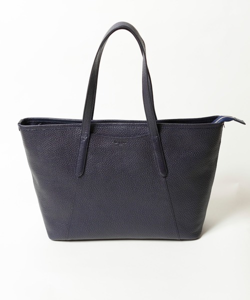 【『オンオフ兼用 』大人のための万能レザートート】撥水加工を施したシボ型押しレザーを使用したシンプルなデザインのトートバッグシンプルなデザインで、カジュアルシーンにはもちろん、かっちりとしたビジネスシーンでも違和感なく使える、オンオフ兼用の便利なトートバッグです。【素材・デザイン】染色時に防水剤を革内部に浸透させており、レザーの弱点である水濡れをカバーします。内部には防水のボトルホルダーを配し、カバンの中身が綺麗に整頓できます。小物の整頓に便利な小ポケットがついており、手帳や財布などをスタイリッシュに収納可能です。【カラー】『ベージュ』はシンプルながら飽きのこないデザインで長く使えます。『ネイビー』はシックな印象でビジネスシーンでも問題なく◎※着用画像は光の加減等で仕様が異なる場合があります。※着用画像はサンプルのため仕様が異なる場合があります。