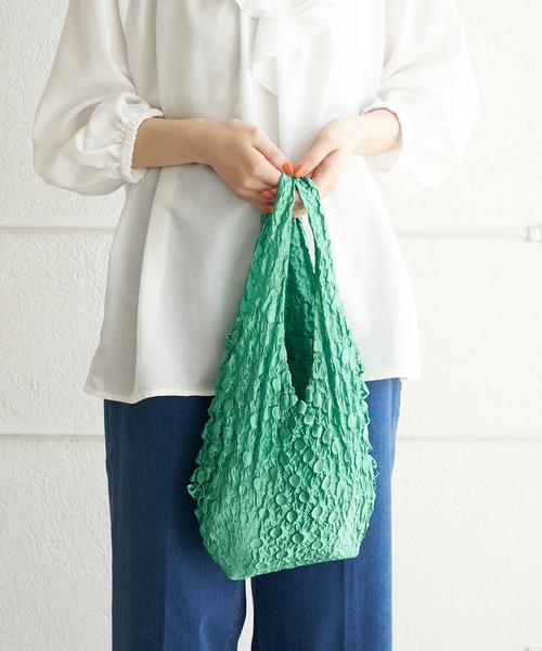 荷物に合わせて大きさが変わる! 【デザイン・シルエット】 ・中身に合わせて伸び縮みする、ストレッチエコバッグです。 ・使用してない時は小さくなるので持ち運びにも便利です。 ・立体感のある、ドット模様の素材がポイント。 ・近所のちょっとしたお出かけバッグとして、またお買物用のエコバッグとして、幅広い使い方を楽しめます 【カラー】 ・種類豊富な6色展開。 ※撮影時の光、お使いのモニター環境によって色の見え方が違う場合がございます。