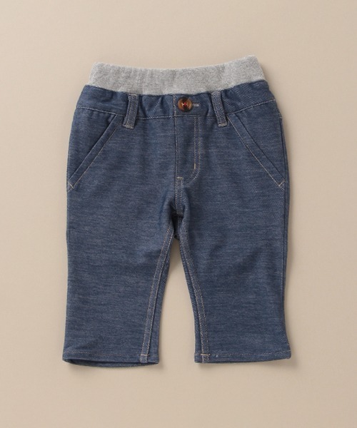 優れたストレッチ性で着心地の良さを追求した7分丈パンツです。フロントに添えた飾りボタンは、おしゃれにこだわるお子さま必見♪ 裾をクルリと折り返して星柄の裏地をアピールしたスタイリングもオススメ。ウエストはお腹周りをやさしくホールドするリブ仕様です。