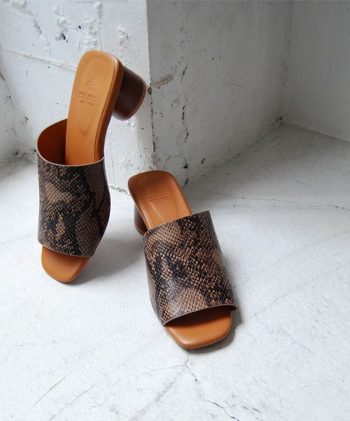カッティイングが特徴的なサンダル。甲をしっかりと覆うアッパーデザインやスクエアトゥが、モダンな印象を与えます。円柱ヒールはウッドプリントが施され、サイドからバックにかけてのルックをスタイリッシュに演出。安定感があり、普段使いにぴったりの履き心地です。※カラーによって柄が異なります。ブラック(01)ベージュ系(28):無地ブラウン系(28):パイソン※撮影時の光、お使いのモニター環境によって色の見え方が違う場合がございます。※この製品は、水や汗、摩擦などにより色移りする恐れがあります。白や淡い色のソックス、ストッキングの着用の際はご注意下さい。また、雨や雪の日のご使用はお避け下さい。