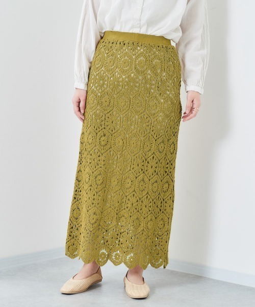 大人ガーリーなクロシェ編みのスカートヒール合わせはもちろん、スニーカーと合わせてカジュアルダウンも◎裏地付きなので安心して着用いただけます。クロシェベストとセットアップが可能となっております。クロシェベスト:56999391コーデの主役になること間違いなし♪春・夏ぽいカラーのスカートなので長く穿いていただけます!