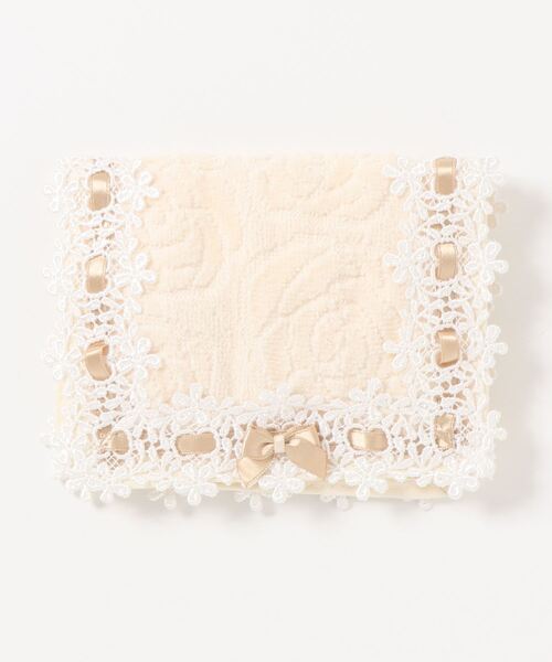 【アイテム説明】薔薇柄のパイル地に繊細なはしごレースをあしらったティッシュポーチです。カバンの中で紛れがちなポケットティッシュを可愛く持ち運べるアイテムです。日常使いに、プレゼントに、いろいろ使えるアイテムです。