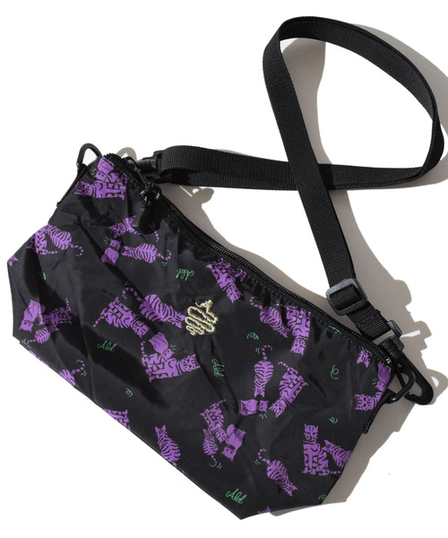 ALDIESオリジナルテキスタイルを表地に使用し製作したコンパクトなショルダーバッグです。 キャットプリントの生地は吸水速乾性を持つ薄手で軽いポリエステル素材をセレクトし製作している為、本体の重量約85gと非常に軽量なアイテムとなっています。 小ぶりなサイズながらに、ALDIESの長財布や500mlのペットボトルがジャストサイズで収まる程度の幅・マチを持たせました。 内部にはジップ付きのポケット付きで、日常使いに重宝する実用的なバッグです。 幅広いサイズ調節が可能なショルダーベルトは取り外しが可能となっており、ポーチとしての使用も可能です。 内側ポケット:1 外側ポケット:1