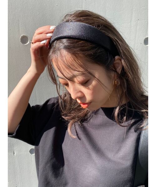 マットな質感のサテン生地を使用したカチューシャです。 少し厚みがあり、ころんとしたシルエットが特徴です。 普段のスタイリングにプラスするだけで、一気にトレンド感のあるスタイリングになります。