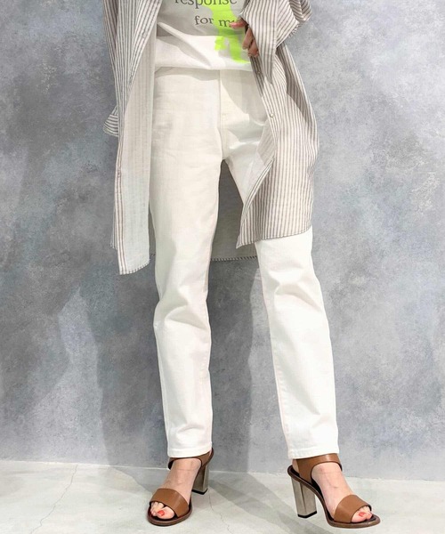 Q定番Q girl DENIMにホワイトが登場です。 スタッフ着用率№1の大人気デニム。 股上は深めで少しゆったりめのサイズ感で安心感のある履き心地にしました。 とにかく履きやすく、形のきれいなデニムパンツです。 蛍光オレンジの糸で太番手ステッチ、カンヌキを入れさり気ないアクセントに。 履いていくうちに出てくる、くたっと感と色落ちが味がありかっこよく穿いていただけます。 だぼっとなりすぎず女性らしいラインが◎ とにかく一度履いたらヘビロテ間違いなしの1本は持っていたいデニムです。 洗濯:手洗い可 《インフォメーション》 ◆商品のお気に入り登録 完売していても再入荷時に再入荷通知を受け取ることができますので、是非ご登録ください。 ◆ブランドのお気に入り登録 新商品や再入荷などの情報を受け取ることができますので、是非ご登録ください。
