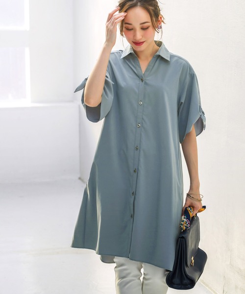 さらりと着れる機能派ワンピース 程よくストレッチするので動きやすく、快適なワンピース。 汗を素早く吸収し乾きやすい、サラっとした肌ざわりが魅力。 UVカット機能付で、紫外線から肌を優しく守ります。 シワになりにくい素材なのも嬉しいポイント◎ スキッパーシャツで首元をすっきり見せ、 ワイドな袖と袖口の大きめなリボンがアクセントになります。 後ろに施したタックが女性らしく、 ふわりとしたシルエットを生み出します。 ゆとりのあるシルエットで体型カバーも期待できます。 一枚でワンピとしてもオシャレですが、 スリムパンツやレギンスパンツを合わせたコーデも◎ デイリー使いはもちろん、お出かけなどに幅広く活躍します。 ●吸水速乾 ●UVカット ●イージーケア ●6分袖 ●ポケット有り ●ボタン有り ●ストレッチ有り サイズ:M、L、LL(XL) カラー:ブルーグレー、モカ、テラコッタ、ネイビー ※嬉しいプチプライス!まとめ買い&色違い購入もオススメです。 --------------------------------------------------------------------- ※サイズ寸法は実際の寸法と多少の誤差がある場合がございます。 ※ご覧いただいているPC/WEB環境や撮影環境により、 多少色味が異なって見える場合がございます。 【お買物をよりお楽しみいただく為に】 ▼商品のお気に入り登録をおすすめします♪ 『♥をクリック!』 完売カラーの再入荷やラスト1点の追加、 セールの際の通知を受ける事ができます。 ブランドのお気に入り登録もご一緒にお願い致します。 --------------------------------------------------------------------- 洗濯:洗濯機使用可(ネット使用)