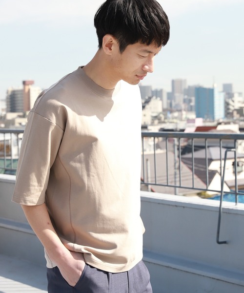 度詰めのスムース素材を使用した、スウェット風Tシャツ。サイドに切り替えデザインをプラスし、シンプルながらもこなれた印象に仕上がります。