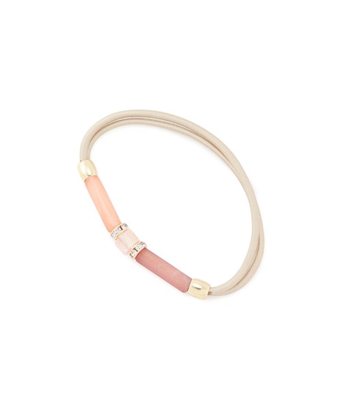 カジュアルスタイルのアクセントに最適。 【デザイン・シルエット】 ・細身のゴムを二重使いにし、カラービーズをあしらったカジュアルなヘアゴムです。 【カラー】 ・ベージュ、カーキ、パープルの3色展開。 【スタイリングポイント】 ・外したときにはブレスレットのように腕につけてもオシャレです。 ※撮影時の光、お使いのモニター環境によって色の見え方が違う場合がございます。