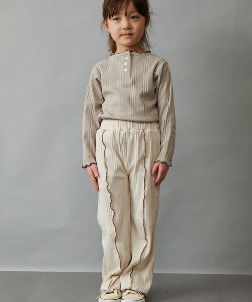 -&yam/アンドヤム- 2021SPRING 定番のリラックスパンツもトレンド感のあるランダムプリーツとメローのデザインでアップデート。シーズントレンドのランダムリブ素材にセンターと裾がメロー仕立ての配色ライン入り。フェミニンなプリーツ仕立てが魅力のリラックスイージーパンツ。少しフレアーシルエットラインが特徴。ウエスト回りはゴム仕様なので、ストレスフリーな履き心地も嬉しいポイントです カジュアルから大人キレイ目スタイルまで幅広いコーデにおすすめ◎ワンピーススタイルに、レイヤードボトムとしてちらっと合わせもおすすめコーデ おうちコーデやワンマイルコーデにも最適 カラバリ豊富に取り揃えております メローとは・・・? ロックの一種の巻きロックのことで、仕上がりが2~3ミリほどの幅で裁ち端を巻き込みながらかけます。 裾がフリルのように波打ちされた加工が施されたデザイン。 フリル端などによく使われています。 《&yam》 brand identity “BETTER DAYS” &yamはオシャレが大好きな親子の為に、素材・デザインディティールにこだわり、大人服と同感度・同品質を目指します。 デイリーに着られる機能・着心地・スタイリングのしやすさ・全身揃えられる価格で、&yamユーザーの日々の暮らしがより良くなるお手伝いをしたいと願っています。 【INFORMATION 】 ▼お気に入り登録▼『♡』マークを押してお気に入り登録をすると、割引クーポンの発行/セール開催の通知/タイムセール通知/人気商品の再入荷通知など、eversince/&yam取扱いブランドのお得な情報を受け取ることができます。 気になった商品はどんどん『♡』マークを押して、登録してください ※モニター・環境等により実際の商品と多少色味が異なって表示される場合がございます。予めご了承をお願いいたします※