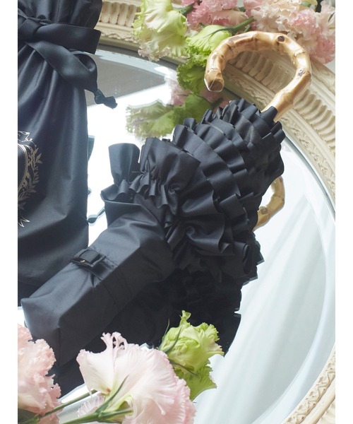 人気のフリル折りたたみ傘に新作が登場!≪遮光率100%≫≪UV CUT加工≫≪晴雨兼用≫ ボリュームのあるフリルの縁取りがポイントの折りたたみ傘♪ ゴールドのプリントであしらったブランドロゴも上品なアクセントに。 バンブー素材のハンドルが持ちやすく、エレガントな雰囲気を演出してくれます。 UVカット+遮光率100%の生地を使用した機能性も魅力的◎ 晴雨兼用なので、早めの紫外線対策や梅雨時期にも大活躍するアイテムです。 閉じた時もデザイン性を損なわないカバー付き。 ※UPF(紫外線保護指数)は最高値の50+※親骨の長さ 55cm ● Maison de FLEUR ● (メゾン ド フルール) 「With Happy Days」 大切な誰かの幸せに寄り添う女性のためのギフトショップ。 フレンチテイストをベースとした上品なライフスタイル雑貨を展開。 自分へのご褒美、大切な人への贈り物に、 人生を彩る様々なシーンにフィットするラインナップを揃えました。 ▼ 商品のお気に入り登録がおすすめです ▼ 商品ページ内のハートマークをクリック。完売時の再入荷や、最後の1点の通知、コーディネート画像がアップされたとき、お得なお値下げの際の通知を受ける事ができます。 【お知らせ】ページでも通知が確認できます。
