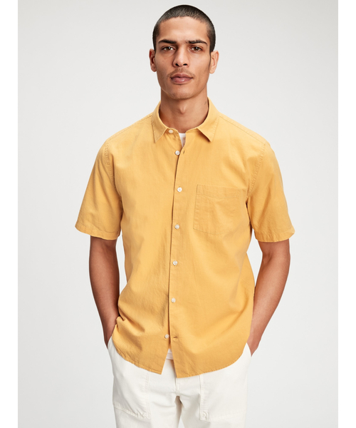 滑らかなコットンリネン生地 半袖 前ボタン、襟付き フロントにパッチポケットストレートシルエット、リラックスフィット 腰あたりまでの丈 ※商品タグに記載の価格とサイト上の販売価格が異なる事があります。【Gap ギャップ】1969年にアメリカ・サンフランシスコで創業以来、世界的なカジュアルファッションブランドとして、常にモダンなアメリカンカジュアルを提案し続けています。