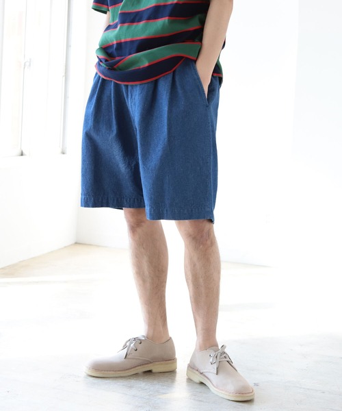 上品なデニムショーツフロントに2つのプリーツが入ったデニムショーツ。上品なイメージのあるプリーツですが、デニム素材を使用することによりカジュアルなアイテムにもマッチ。色合わせのしやすいデニムは、トーンの異なるカラーリングを2種類ご用意。好みによってお選びいただけるのも嬉しいポイントです。Model:H170cm W53kg Size:M※商品の色味は白背景商品単体で撮影した画像をご参照ください。※屋外撮影による光の当たり具合やパソコンなどの閲覧環境によって、実際の色味と異なって見える場合がございます。予めご了承ください。