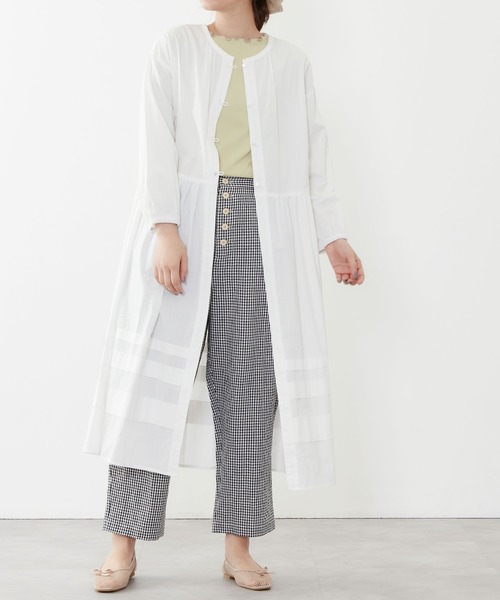 ヴィンテージライクなふんわりと広がるシルエットや裾のタックデザインが特別感のある羽織りワンピース。表情のある洗いざらしコットンの生地を使用することにより、甘くなりすぎず程よいカジュアル感を出しました。羽織り感覚で旬のレイヤードコーデをお楽しみいただけます◎ POU DOU DOU プードゥドゥ ひと手間加えた存在感のある「日常着」 いつまでもときめきとかわいいを忘れない方への 愛着を持てるワードローブ