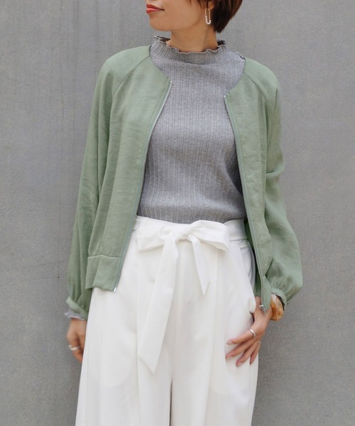 涼しげなシアー楊柳素材のショートブルゾン。コンパクト丈が、ワンピースとの相性◎これからの季節、カーデイガン感覚で着られて、日よけ・冷房対策にも活躍してくれる重宝アイテム。※屋外での撮影画像は、光の当たり具合で色味が違って見える場合があります。商品の色味は、スタジオ撮影の画像をご参照ください。