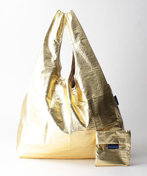 メタリックの光沢が視線を引き付ける<BAGGU>のショッピングバッグ。程よいサイズの持ち運びに便利なポケッタブル仕様です。デイリー使いにはもちろん、旅先や急なお買い物などにも活躍する一品。ご自身用にはもちろん、ちょっとしたギフトにもおすすめ。やや小さめなサイズ(品番:1832-499-5623)のご用意もございます。<BAGGU>2007年にカリフォルニアで生まれたバッグブランド<BAGGU(バグゥ)>店舗へお問い合わせの際は、全国のBEAUTY & YOUTH各店舗まで下記の品名/品番をお申し付け下さい。品名:SC BAGGU MTL STAND/B 品番:1832-499-5624