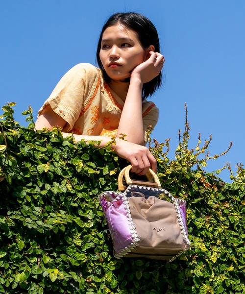 ACCOMMODE ◆バイカラーPVC×カガリ糸の配色がオシャレなクリアバッグ◆ カジュアルにもガーリーにも合わせられるクリアバッグ。 夏のファッションのアクセントにおすすめです。 ウッドの取っ手がトレンド感をアップさせてくれるアイテムです。 キャンバスの巾着付きなので中の物が透けずに安心! 巾着は取り外し可能なので、巾着を取り外して可愛いポーチなどを入れ、 透け感を楽しむのもおすすめです◎ ショルダーも取り外し可能なので、スタイルに合わせて組み替えてお使いいただけます。 ■サイズ バッグ:縦:210mm×横290mm×マチ130mm 巾着:縦:250mm×横300mm×マチ110mm